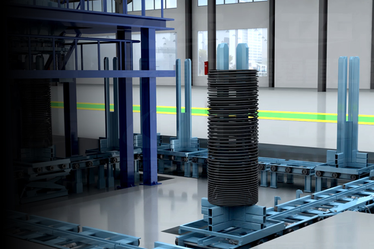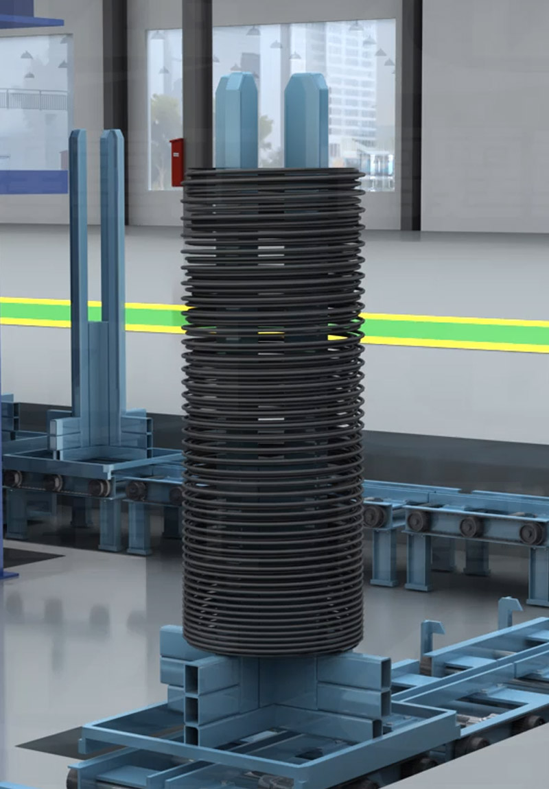 • 組成:A型,集卷筒、托板升降裝置,B型,風冷末端、集卷筒.托板升降裝置.舉升機構,位置:位于散卷冷卻運輸機尾部下方,作用:把來自散卷運輸機的散狀線圈收集成盤卷并套在卷芯架上通過立卷運輸線移走。